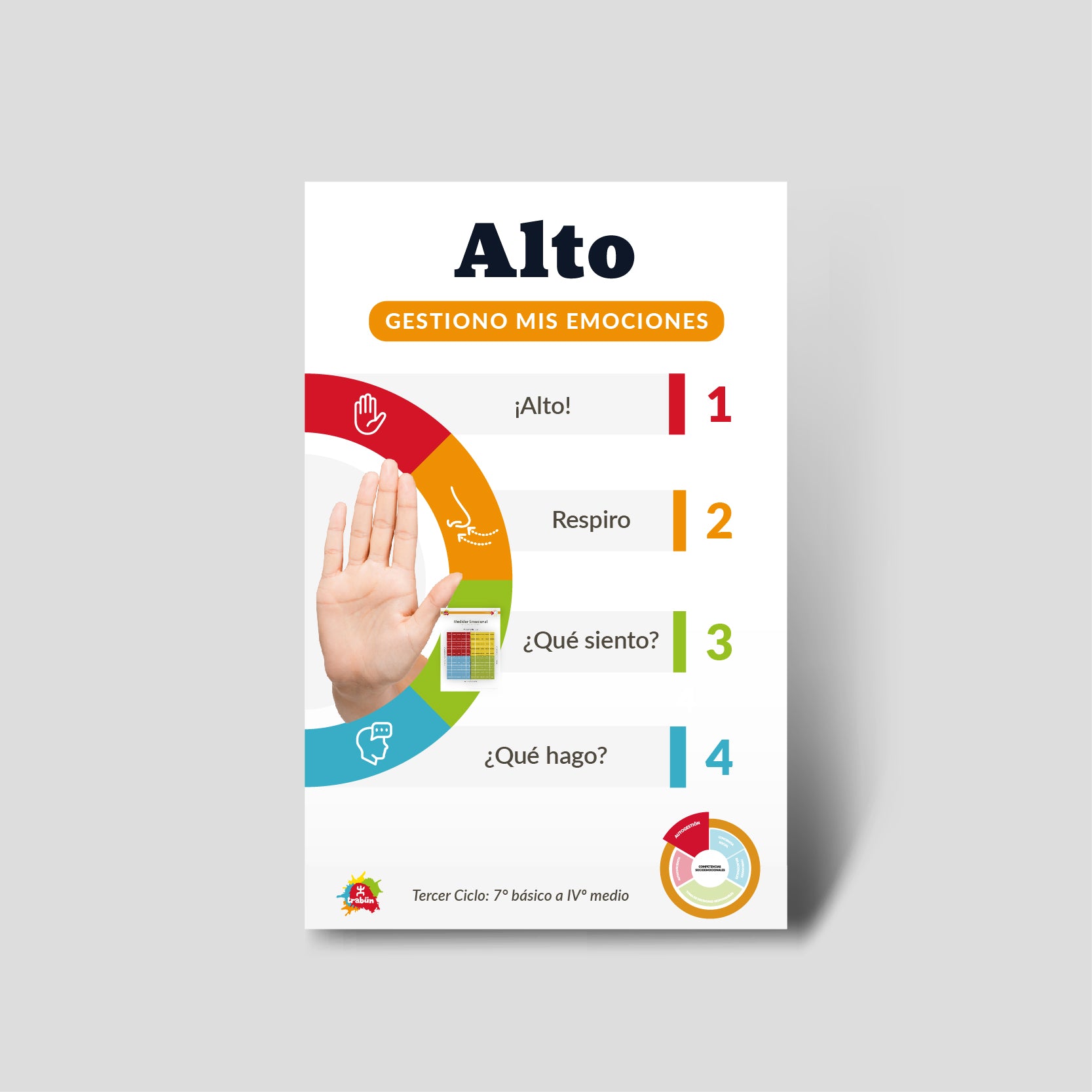Estrategia utilizada para regular emociones intensas, sean estas producto de situaciones de conflicto o de cualquier tipo de gatillante. Favorece la autorregulación emocional por medio de la secuencia 1. ¡Alto! 2. Respiro 3. ¿Qué siento? 4. ¿Qué hago? (adaptación del Método RULER).